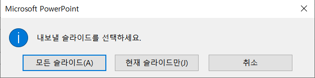 확장자를 바꾸신 후 저장을 누르신 후 아래와 같은 창이 나타난다면 모든 슬라이드(A)를 눌러주세요.