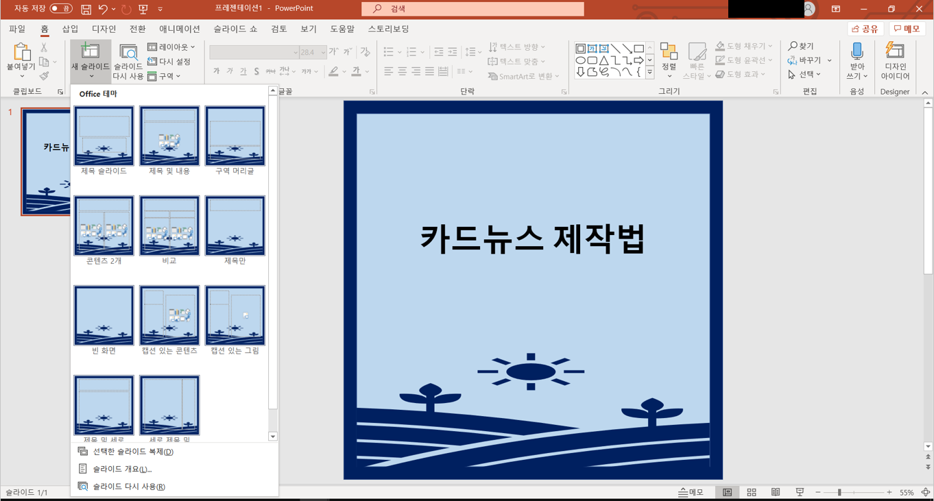 파일을 클릭해보면 아래 처럼 카드뉴스가 만들어져 있는 것을 확인할 수 있습니다.