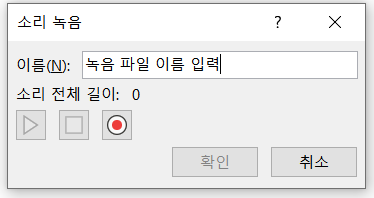 그러면 아래와 같은 소리 녹음 창이 새로 나타납니다.
