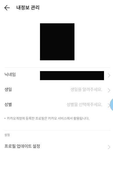 홈 -> 내 프로필 -> 프로필 관리 -> 계정 관리 -> 내 정보 관리 순으로 이동하셔서 생일을 등록하거나 수정해주시면 됩니다. 프로필 관리는 내 프로필을 클릭하면 나타납니다.