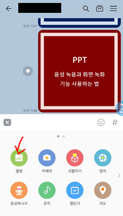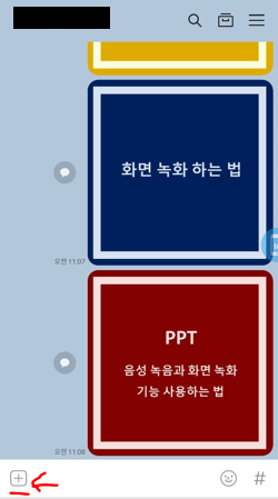 ① 사진을 보내려는 채팅방에 들어가셔서 더보기 아이콘(+ 모양 아이콘)을 눌러주세요.