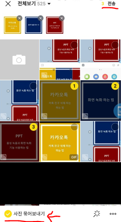 ④ 묶어 보내고자 하는 사진을 선택한 후 좌측 하단의 사진 묶어보내기를 체크해주세요.