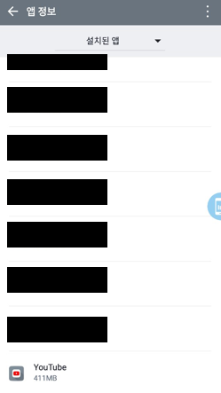 앱에 들어가셔서 설치된 앱을 보시면 YouTube를 발견하실 수 있습니다.