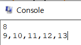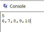 정수 하나를 입력받는다. 이 정수보다 큰 정수 중 가장 작은 값의 정수를 5개 출력해라. 정수의 구분은 , 으로 한다.