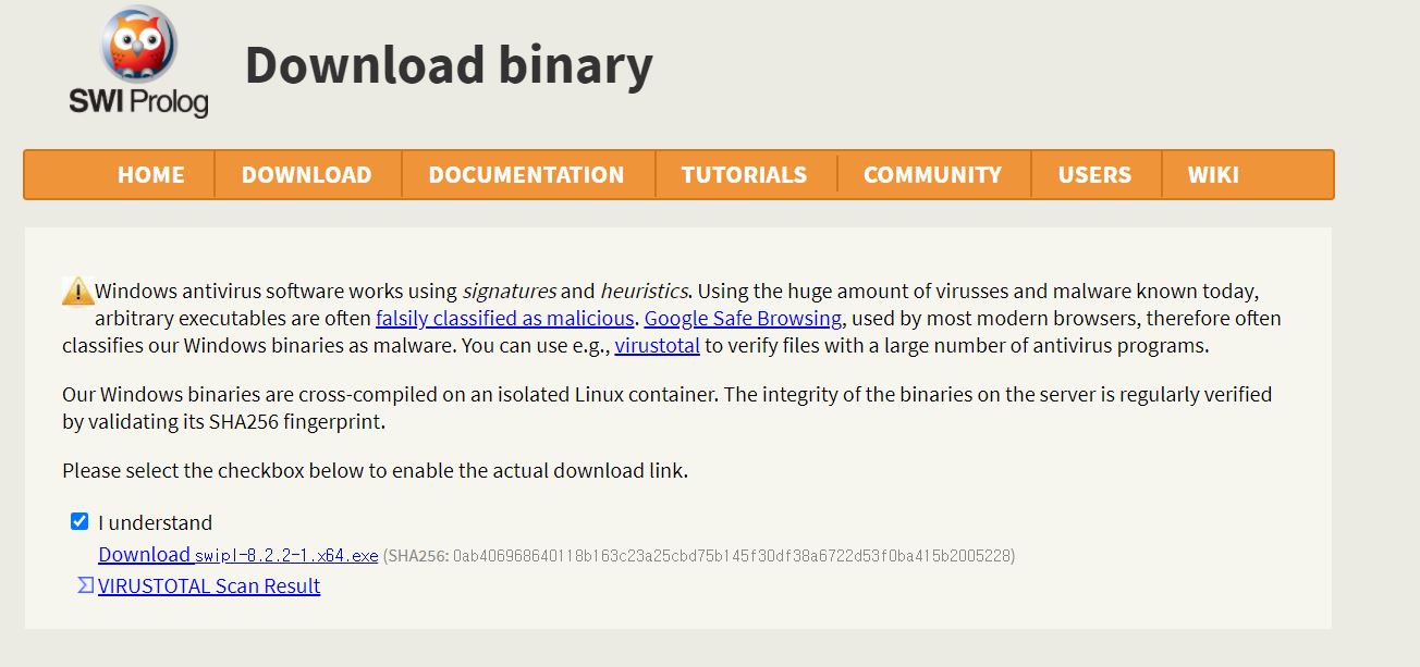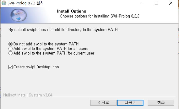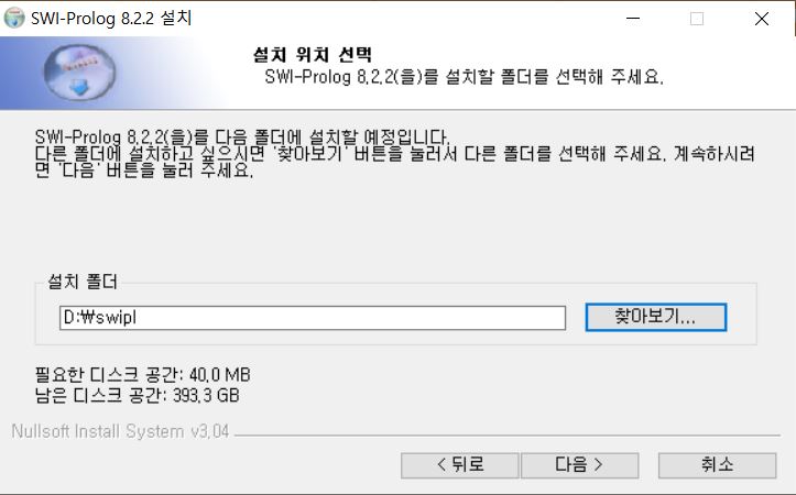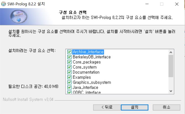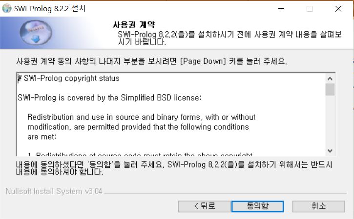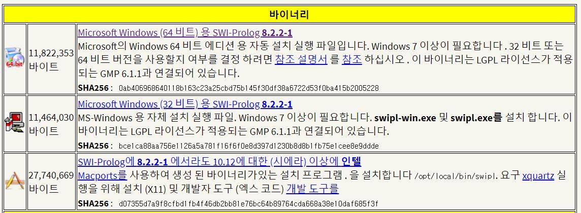 본인의 환경에 맞게 다운받으시면 됩니다. 저는 윈도우에서 사용할 것이기 때문에 Microsof Windows (64비트) 용 SWI-Prolog 8.2.2-1을 다운로드 받았습니다.