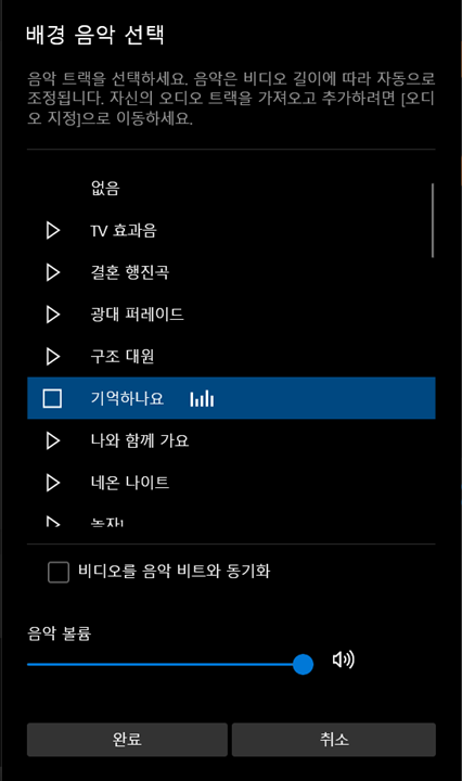 윈도우 비디오 편집기 자체 음악 파일 사용하기