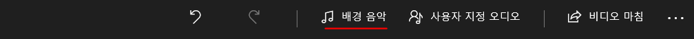 윈도우 비디오 편집기에는 편집기에서 제공하는 음악 파일들이 있습니다. 괜찮은 음악들이 많으니 동영상 제작 시 많은 도움이 될 것이라 생각합니다. 이 파일들은 우측 상단의 메뉴 중 배경 음악을 클릭하시면 이용하실 수 있습니다.