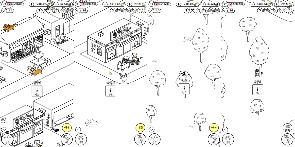 고양이는 정말 귀여워 게임을 하다보면 어느 순간 고양이 외의 새로운 동물 친구들이 추가되는 것을 볼 수 있습니다.