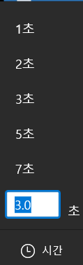 제목 카드가 출력되는 시간은 스토리보드 영역의 시간 메뉴를 통해 설정하실 수 있습니다.