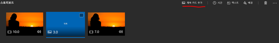 스토리보드 영역에 제목 카드 추가 메뉴를 클릭해주시면 제목 카드를 추가하실 수 있습니다.
