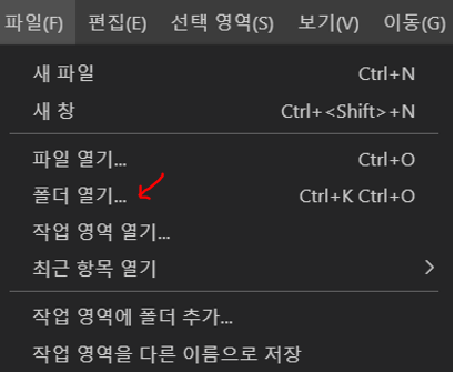 파일 -> 폴더 열기를 통해 작업 폴더를 불러와주세요.