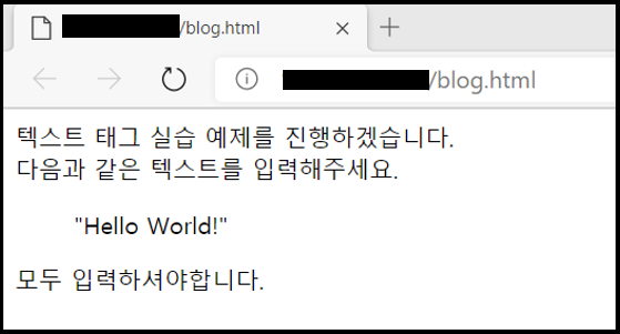 <p> 텍스트 태그 실습 예제를 진행하겠습니다. <br> 다음과 같은 텍스트를 입력해주세요.
