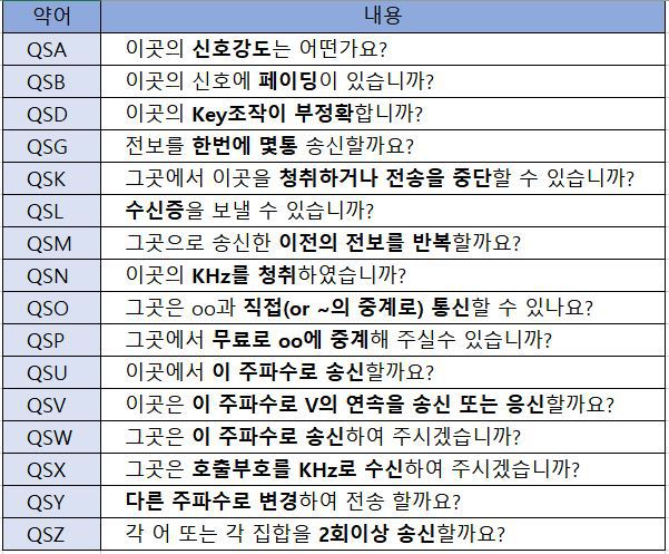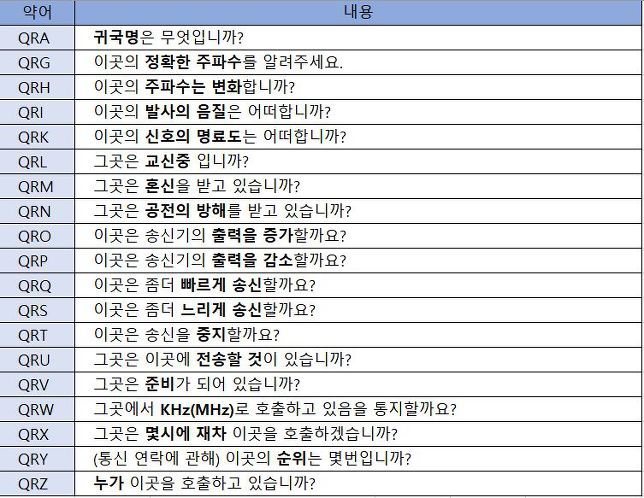 약어는 암기하기에는 너무 많습니다. 그러므로 약어는 아래의 중요 약어만 암기하시고 Q부호나 모르스 부호를 완벽히 암기하시는 것을 추천드립니다.