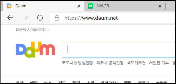 아래 코드는 텍스트 클릭 시 새 탭에 네이버 홈페이지를 기존 탭에 다음 홈페이지를 출력하는 이벤트를 발생시키는 코드입니다. 이를 위해, target 속성에 각각 _blank와 _self를 지정하였습니다.