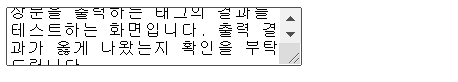 <textarea cols="30" rows="3">장문을 출력하는 태그의 결과를 테스트하는 화면입니다. 출력 결과가 옳게 나왔는지 확인을 부탁드립니다.</textarea>
