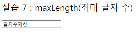 <font size=5>실습 7 : maxLength(최대 글자 수)</font><br><br>