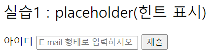 <font size=5>실습1 : placeholder(힌트 표시)</font><br><br>