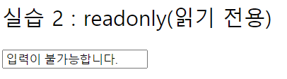 <font size=5>실습 2 : readonly(읽기 전용)</font><br><br>